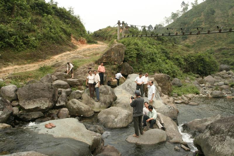 Đi được 1 cây số (theo lời dân ở đây nói vậy!), tới ngã 3 nơi có nhà a.Quang –bí thư xã. Đây là nơi suối Chì mà K6 đã ở khi mới chuyển từ nhà dân vào và là nơi K4 ở khi gặp cơn lũ tàn phá Bom Bom. Hỏi thăm mấy cháu – vào Bom Bom còn khoảng 1 cây nữa! Mồ hôi mẹ, mồ con chảy ào ào. Cả Phát quay về, tôi tiếp tục một mình đi tiếp. Đường gập ghềnh, chẳng có thứ xe nào đi được. Xe hơi, xe máy thì không phải nói rồi, tới xe đạp cũng phải vác lên vai. Đi hết khúc có nhà dân thì đúng là đường mòn dọc theo suối Chì. Chẳng hiếu mấy “bố” đi xe gì tới Bom Bom nhỉ? (Sau này khi gặp a.Quang mới biết chỉ có 2 nhóm K3 và K2 vô tới nơi tắm .. mà a.Quang chỉ dám mặc quần đùi!).